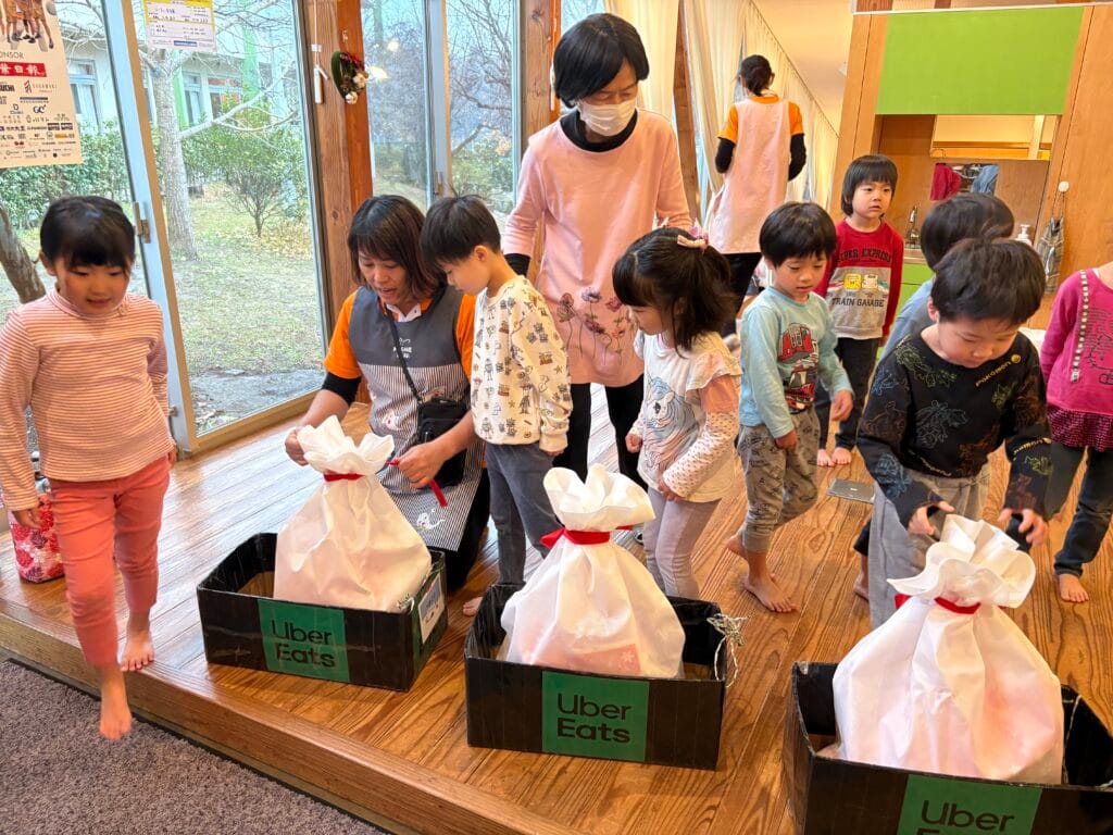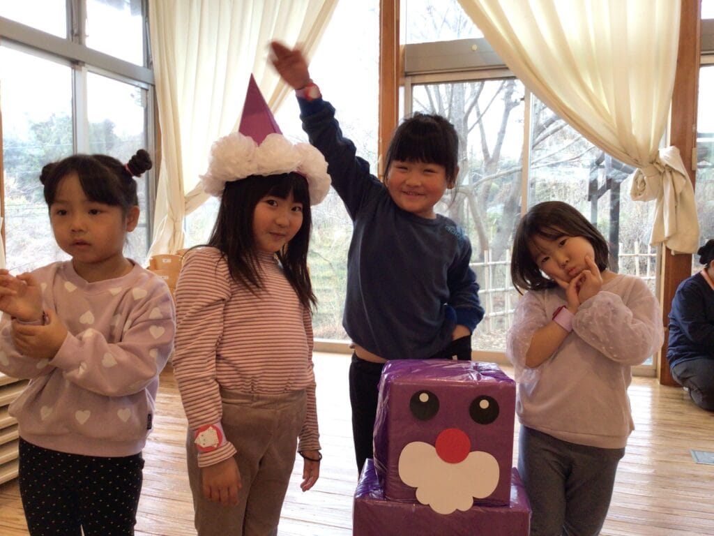 なんと!!保育園の玄関にプレゼントが届いていました!!「プレゼント、なんだろうね?」とドキドキを抑えつつ手作りケーキを食べて「うれしい気持ち」「楽しい気持ち」をみんなで共有しました。