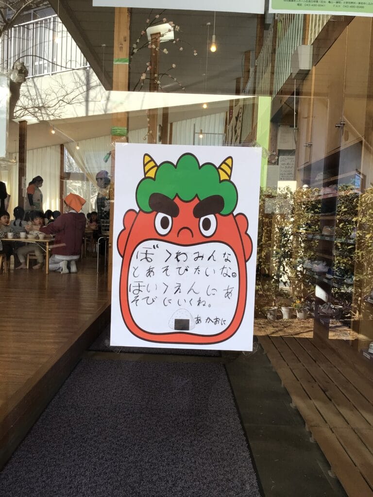 2月2日の月曜日。はくすい保育園の玄関に赤鬼からの手紙が・・・。節分前から「鬼が来たら・・・」と想像するだけでドキドキ・ゾワゾワしていた子どもたちでしたが・・・