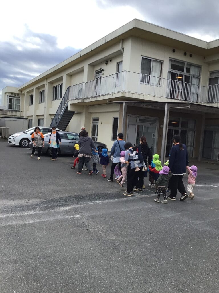 保育園では、月に一回は必ず避難訓練を行っています。
